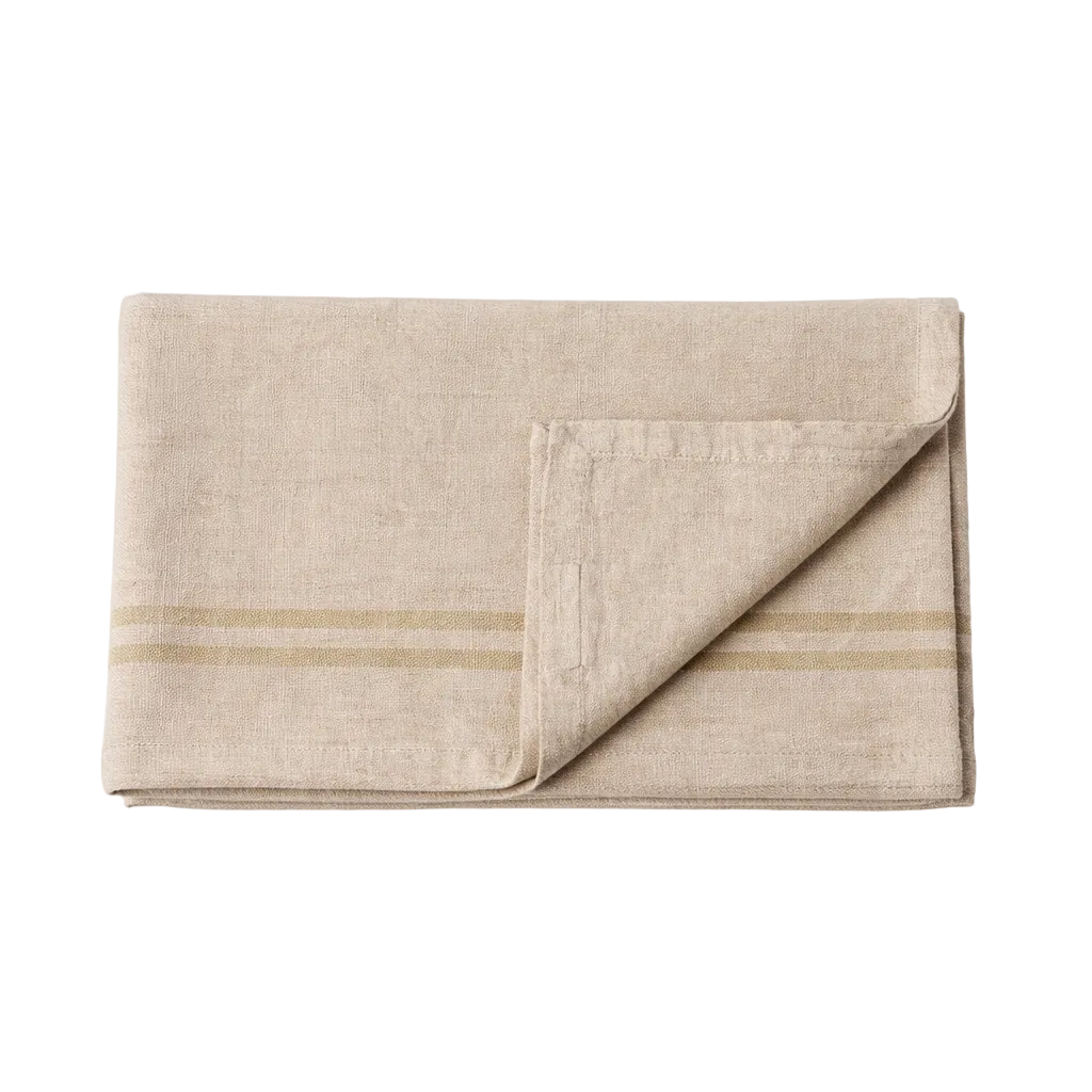 Expertly woven from a premium linen blend, this beautifully textured runner features a soft natural base with subtle woven stripes, offering a timeless, relaxed aesthetic. Effortlessly styled across a rustic wooden table or layered over crisp table linen, it creates a warm and inviting setting for everything from slow Sunday lunches to intimate evening suppers.