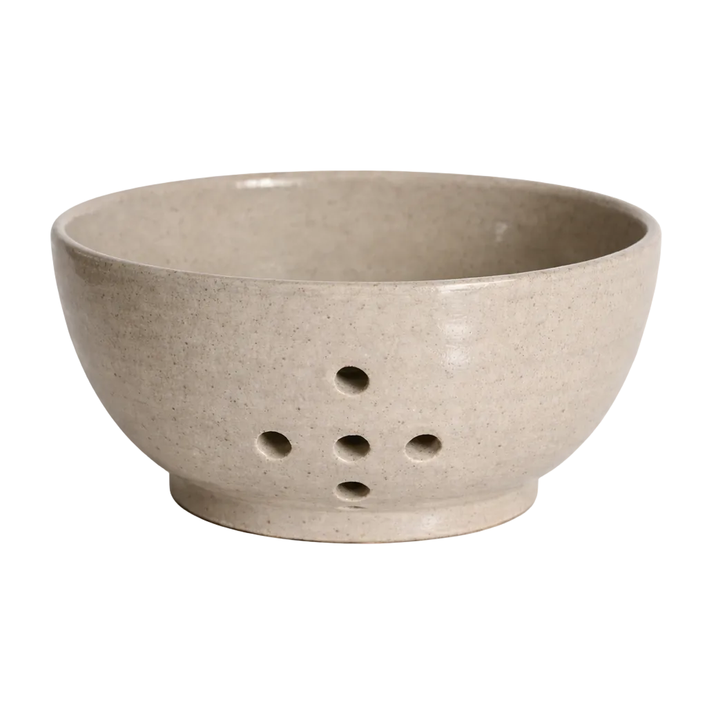 Finished in a warm, softly speckled sand satin glaze with carefully placed drainage holes allow freshly picked berries, cherry tomatoes or garden herbs to be rinsed with ease.