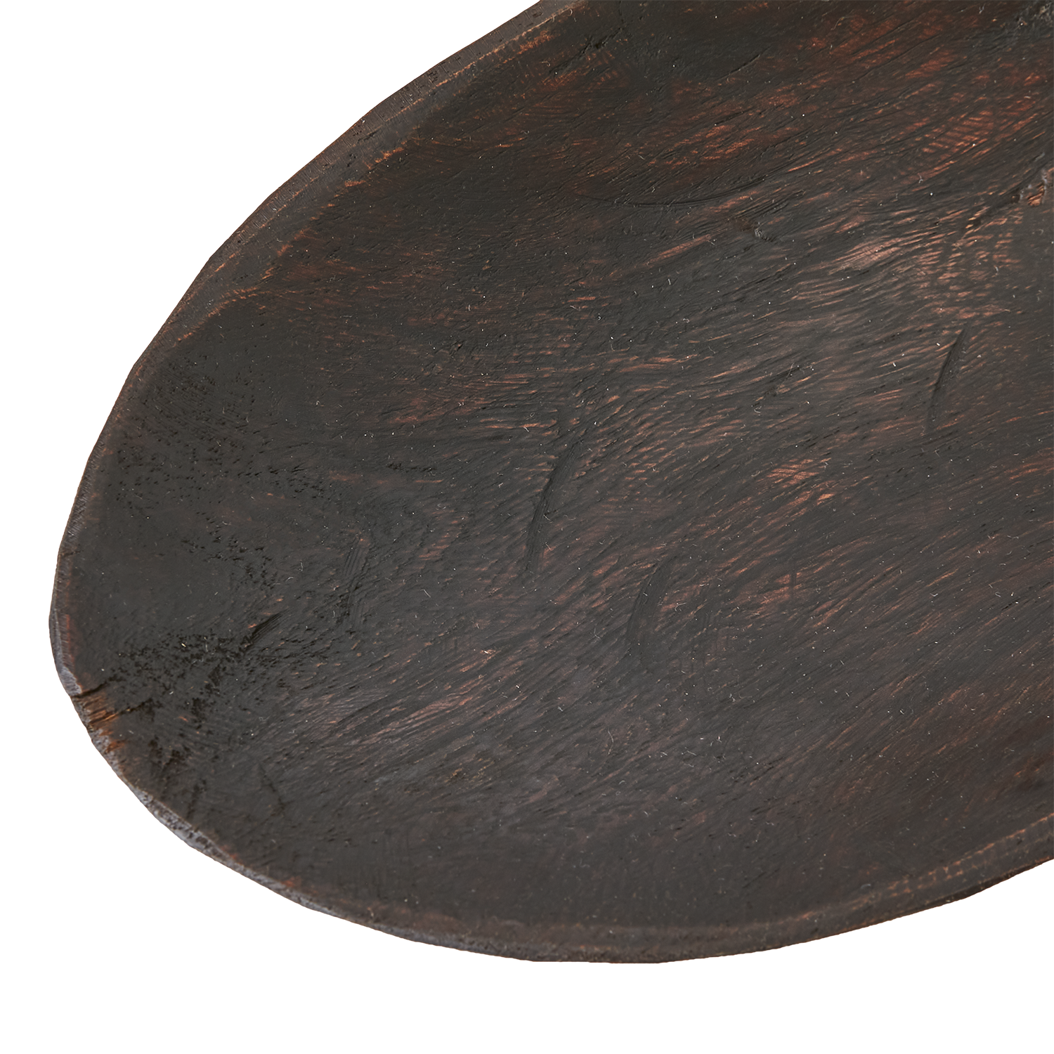 Our Lora brown wooden bowl is the perfect way to stylishly display small objects in your home. Hand-carved and unique, it adds a touch of rustic charm to any space.