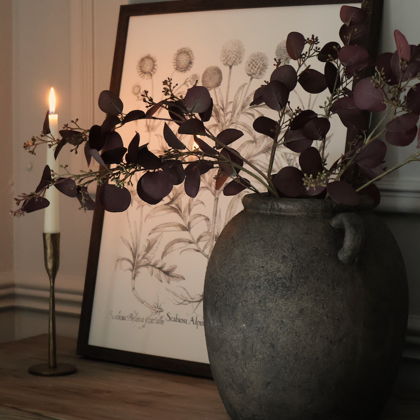 Rich and refined, our Burgundy Eucalyptus Seeded Spray adds depth and sophistication to any arrangement. With its deep plum-toned leaves and delicate branching, this stem captures the moody warmth of autumn and brings a sense of quiet drama to your styling. Perfect styled alone in a rustic urn or mixed with softer greenery for contrast, it pairs beautifully with earthy textures and candlelight, creating a timeless, lived-in feel.