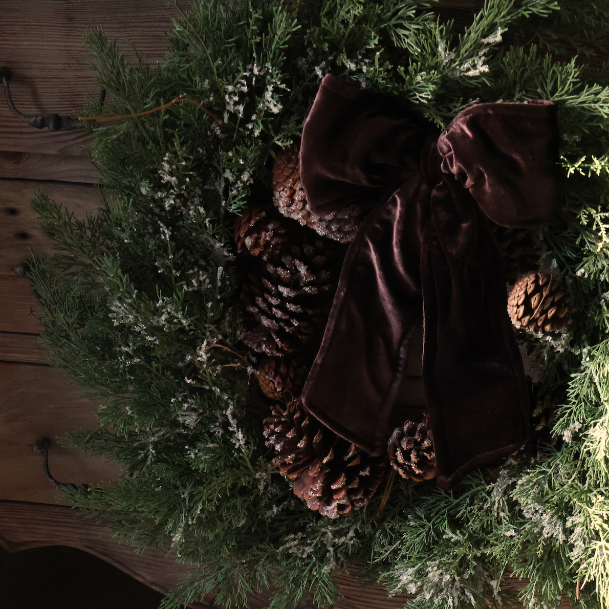 Elevate your Christmas décor with our luxurious Brown Velvet Bow, crafted from sumptuous double-sided velvet for a truly indulgent look and feel. The rich, deep brown tone evokes warmth and sophistication, while the soft sheen of the fabric adds an elegant depth to any space.