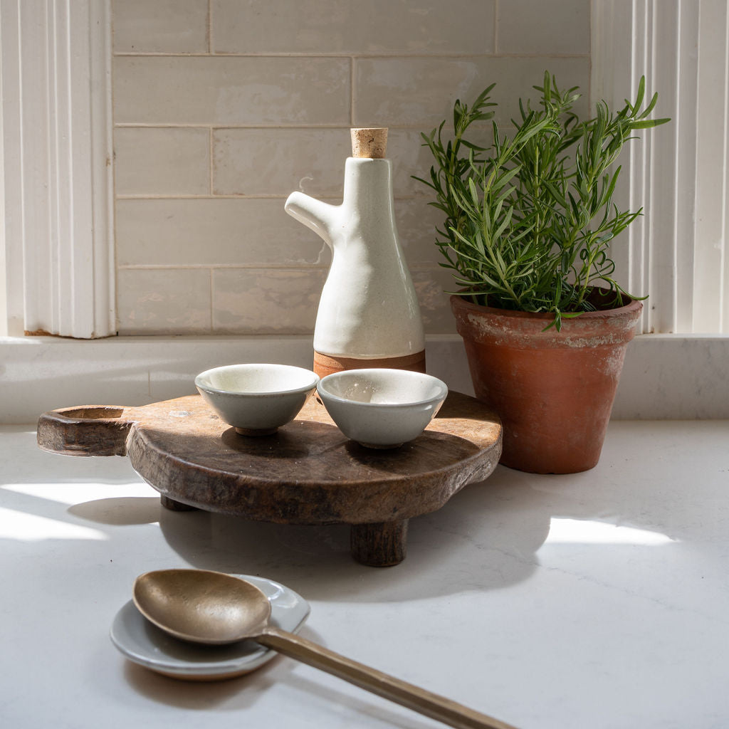 Ceramic bottle with a cork top. Perfect for oils and vinegars. A beautiful way to keep your cooking oils handy by the cooker. Handmade small batch pieces by Artisans in Southern India. The glaze is hand dipped so the finish will vary from piece to piece which adds to its character and beauty.