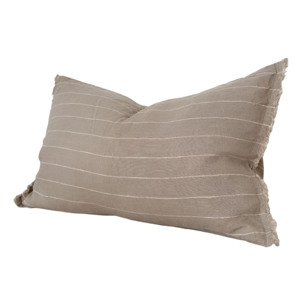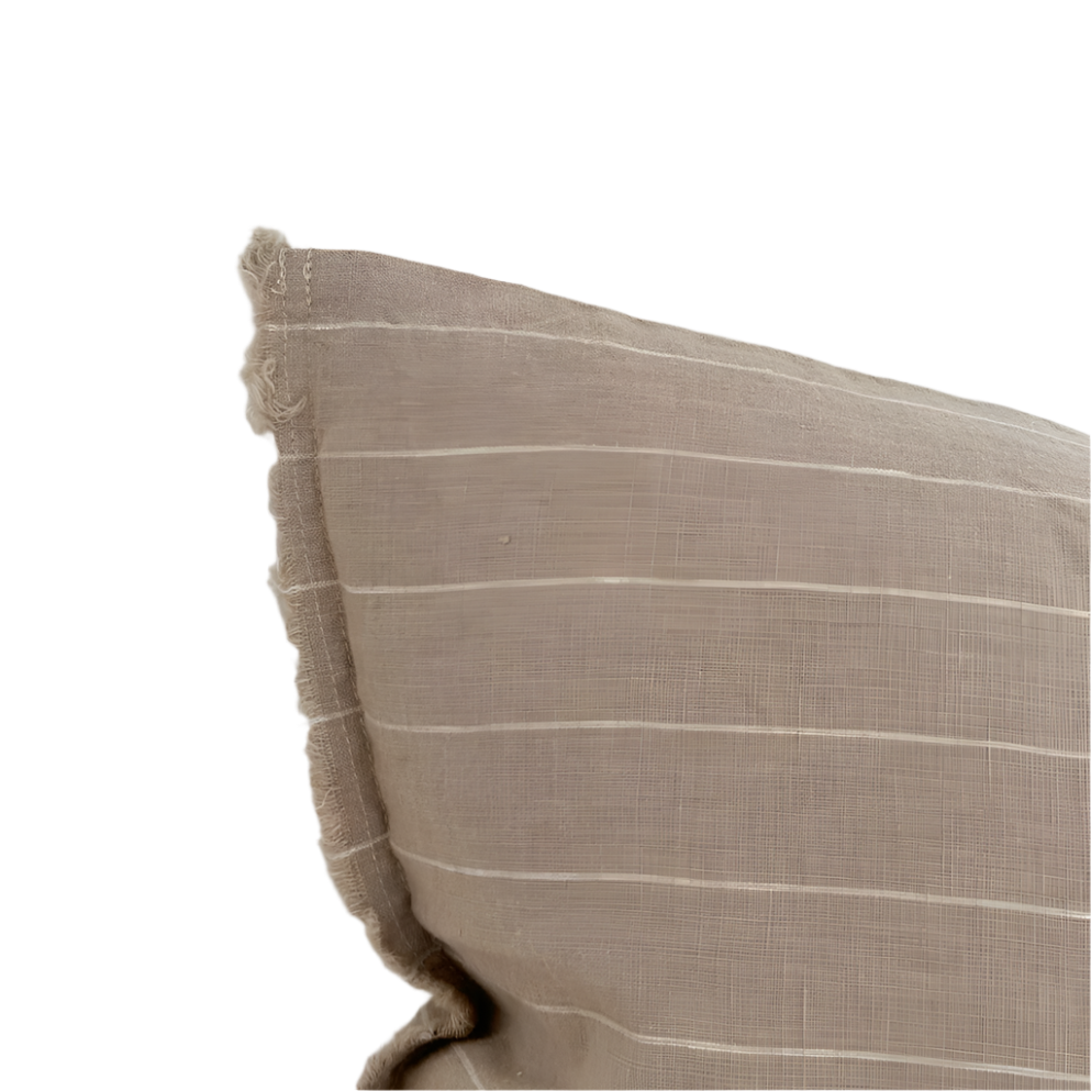 Introducing our Camille Beige Stripe Cushion. This striped cushion seamlessly blends style with comfort, creating a luxurious focal point in any space. Includes luxurious feather cushion filler.