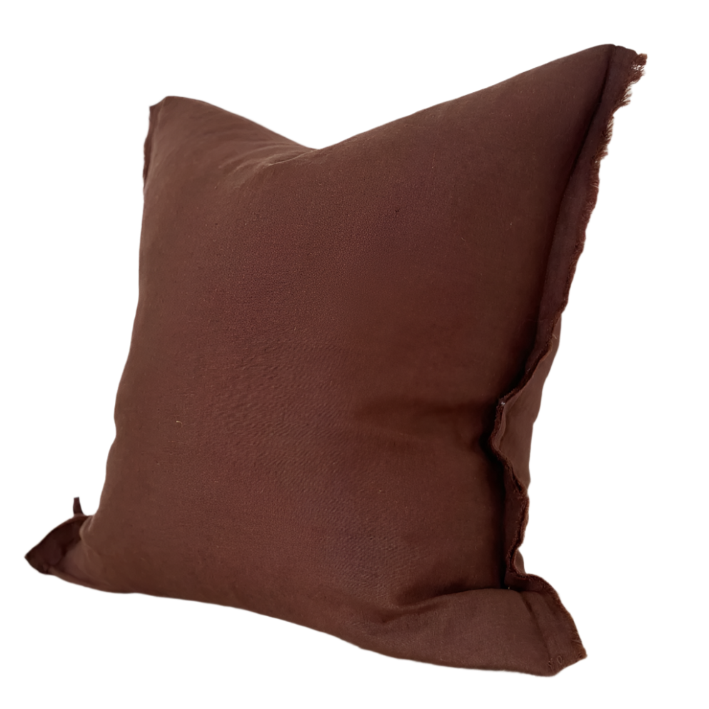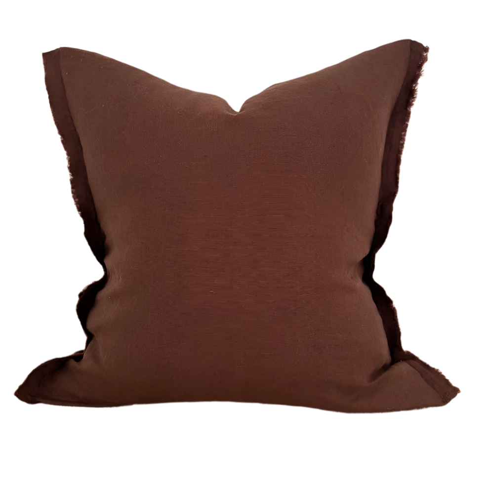 Introducing our Camille Dark Brown Cushion. Our Camille cushions are made from 100% stonewashed linen and feature a fringed edge. Our dark brown linen cushion is perfect for moodier/country interiors. Includes luxurious feather cushion filler.