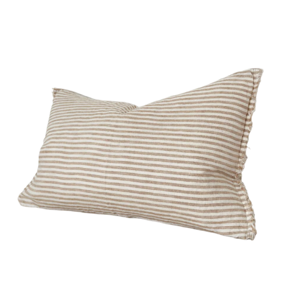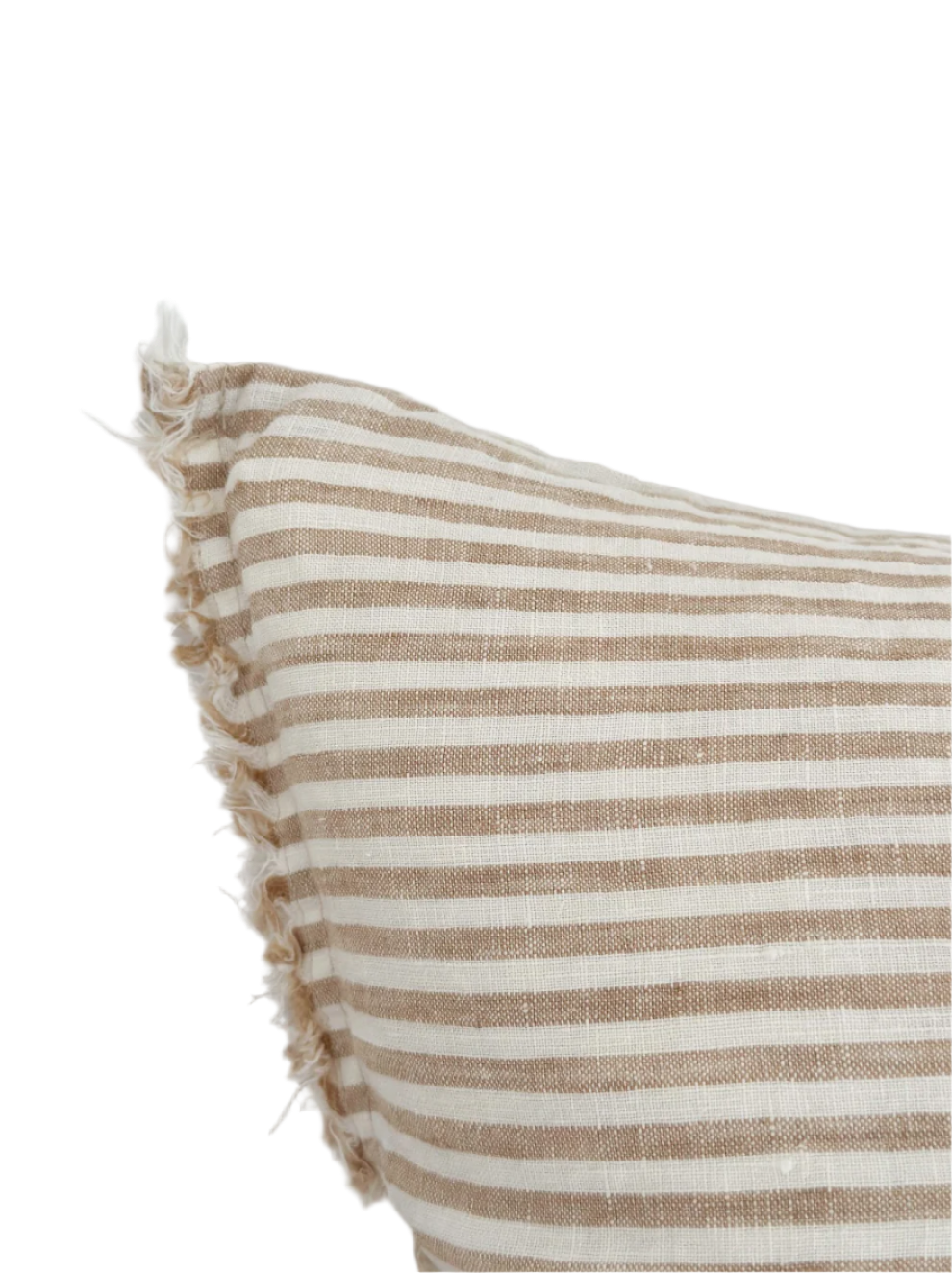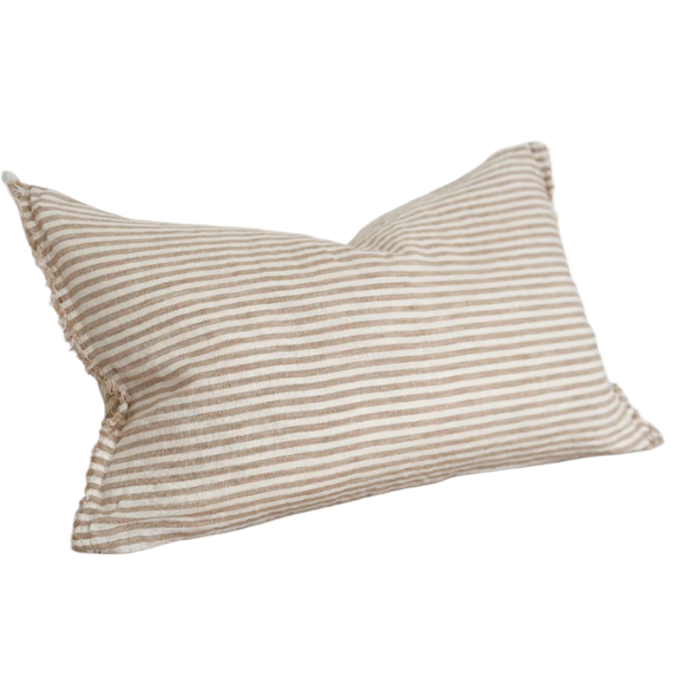 Introducing the Camille Light Brown Stripe Cushion. Made with a high quality linen our stripe cushion provides the perfect neutral tones for your home. Includes luxurious feather cushion filler.