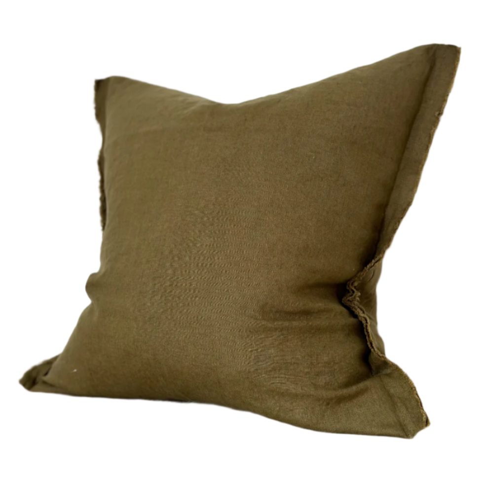Camille Olive Green Linen Cushion