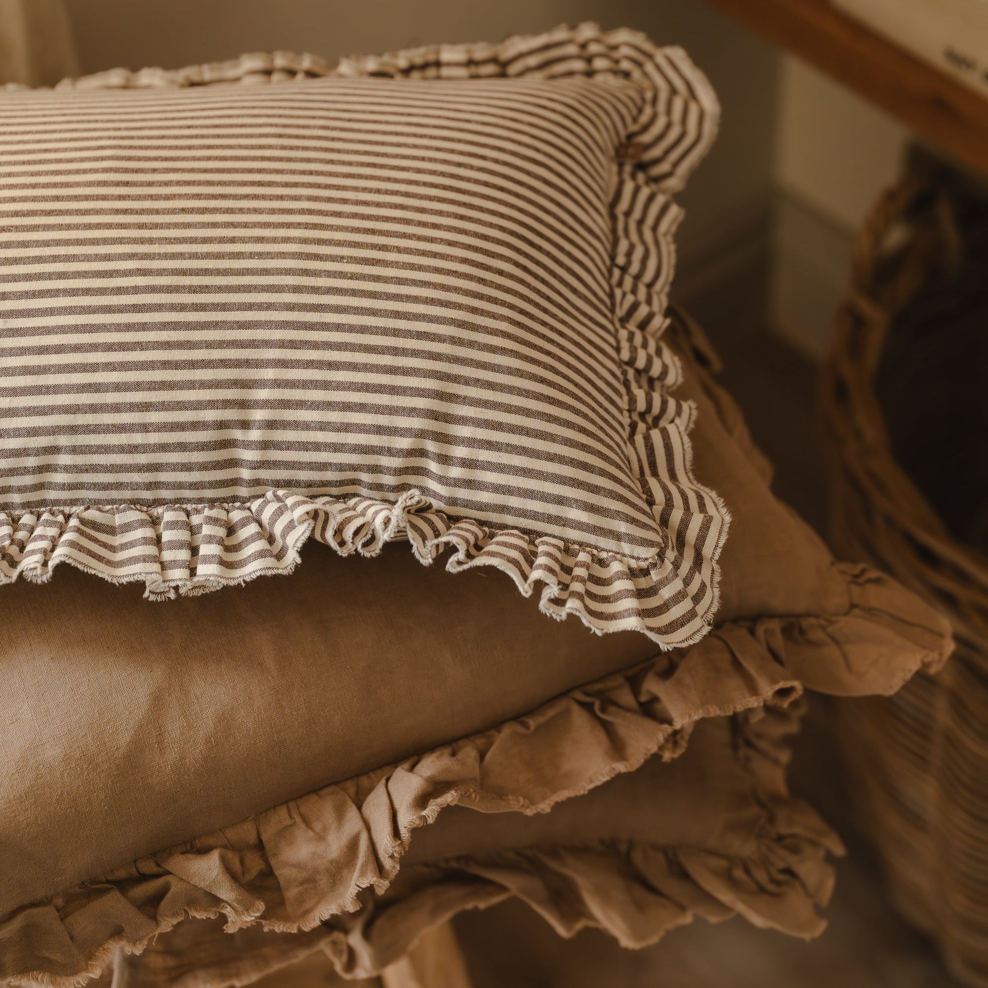 Celia Brown Ruffle Cushion