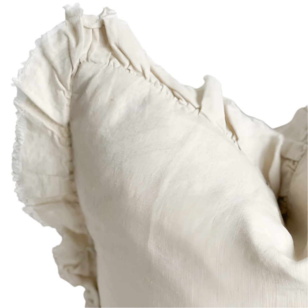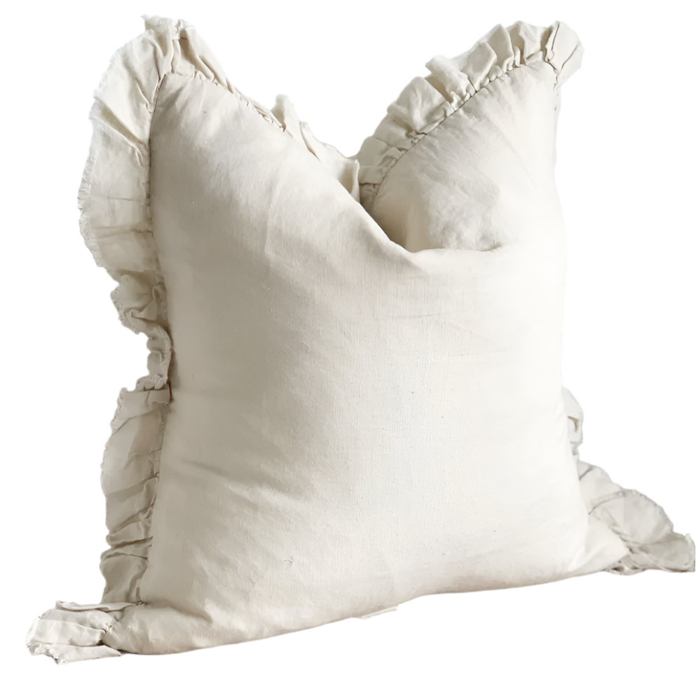 Indulge in the exquisite elegance of our Celia Cream Ruffle Cushion, a lavish cream cushion to add to your home decor that effortlessly merges style with comfort. Includes luxurious feather cushion filler.