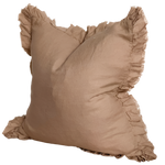 Introducing the exquisite Celia Large Brown Ruffle Cushion. The rich coffee brown hue of the linen cushion adds warmth and sophistication to your living room or bedroom. Includes luxurious feather cushion filler.