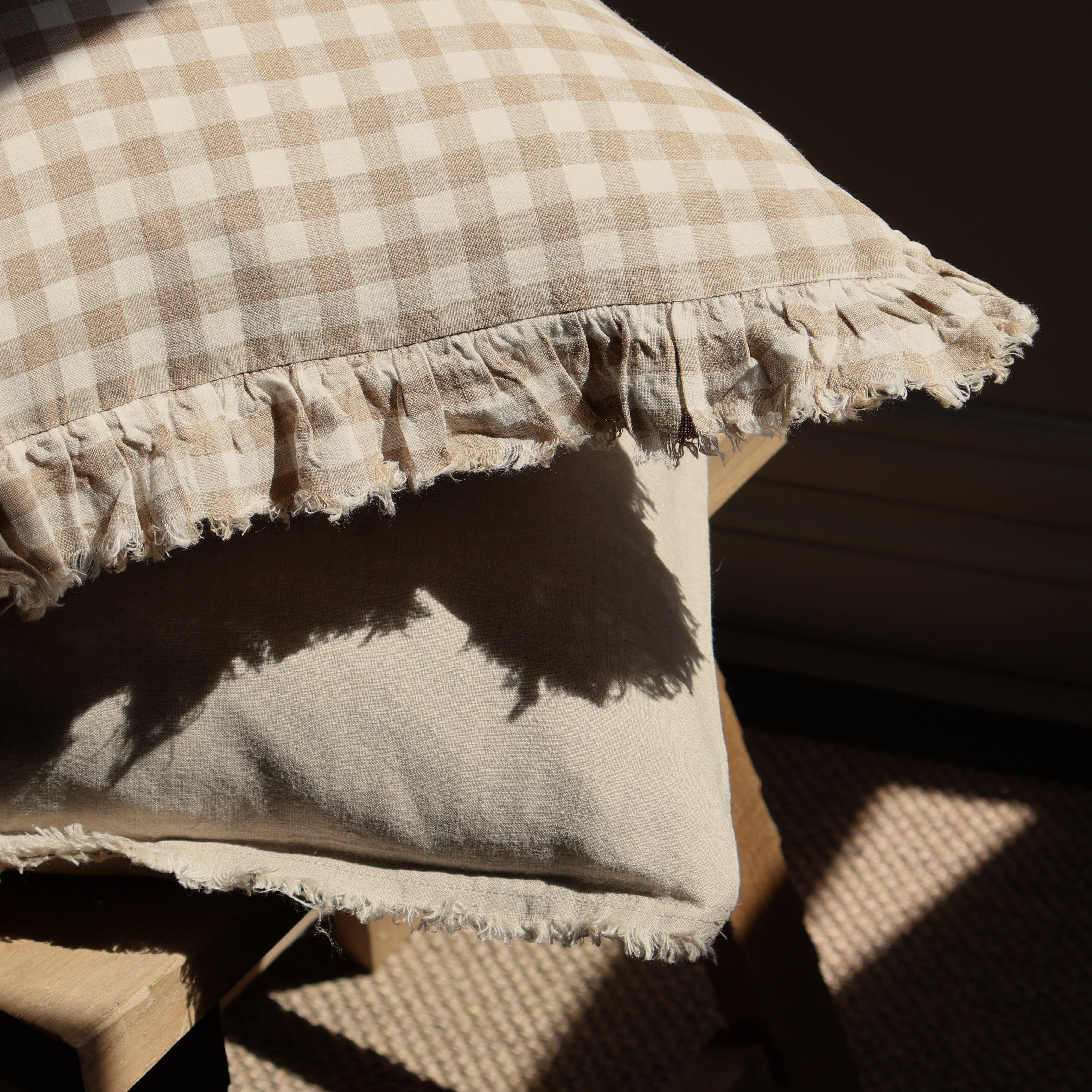 Celia Light Brown Gingham Cushion
