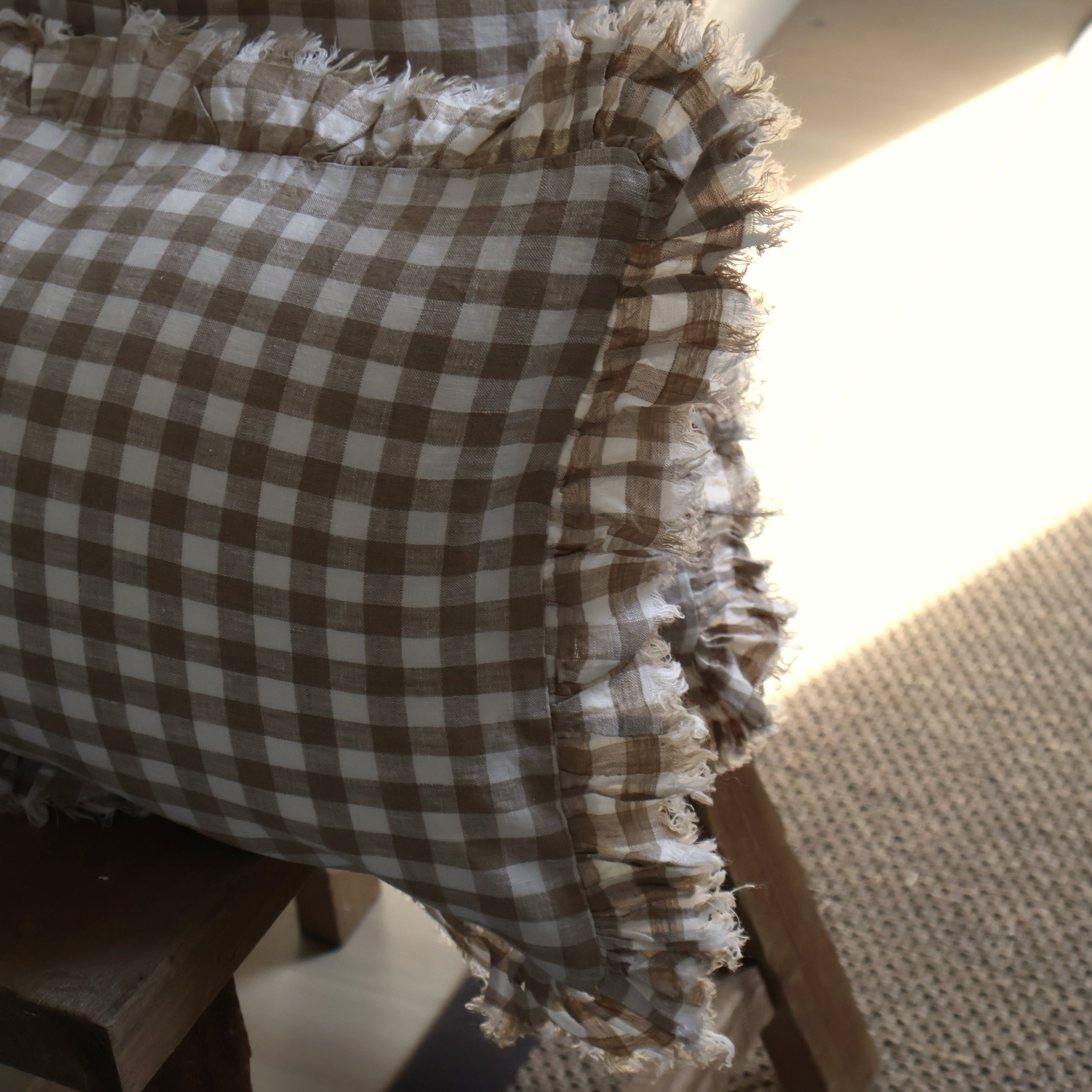 Celia Light Brown Gingham Cushion