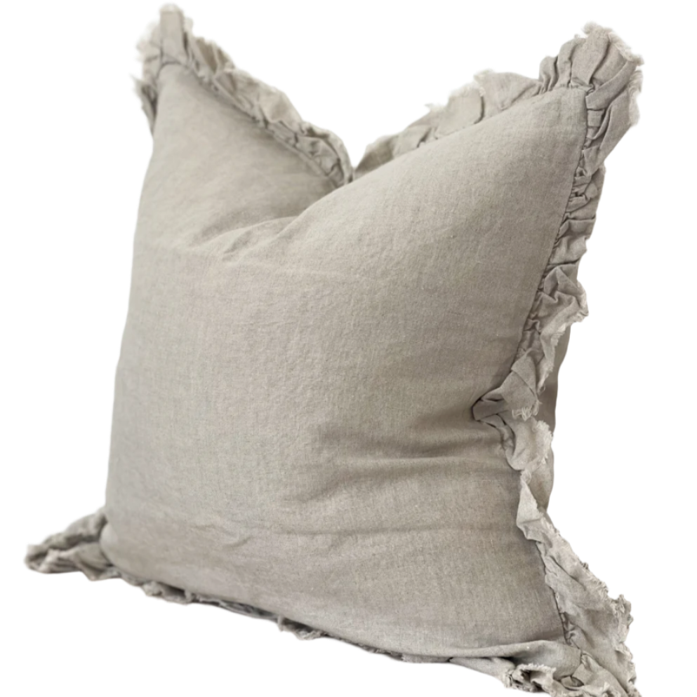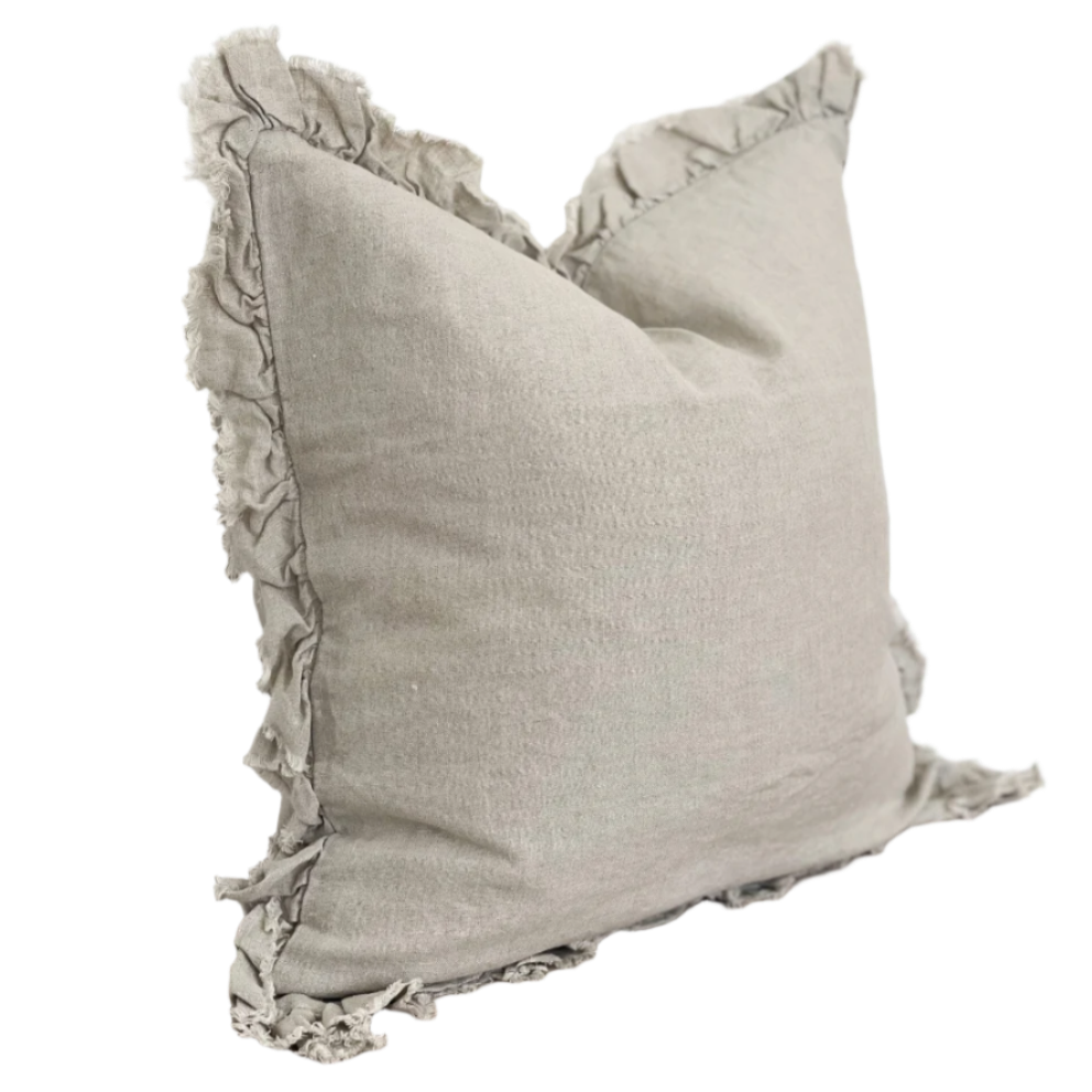 Indulge in the timeless elegance of the Celia Natural Ruffle Cushion, an exquisite stone coloured cushion that effortlessly elevates any space with its charming allure. This neutral cushion is a fusion of sophisticated design and unparalleled cosiness. Includes luxurious feather cushion filler.