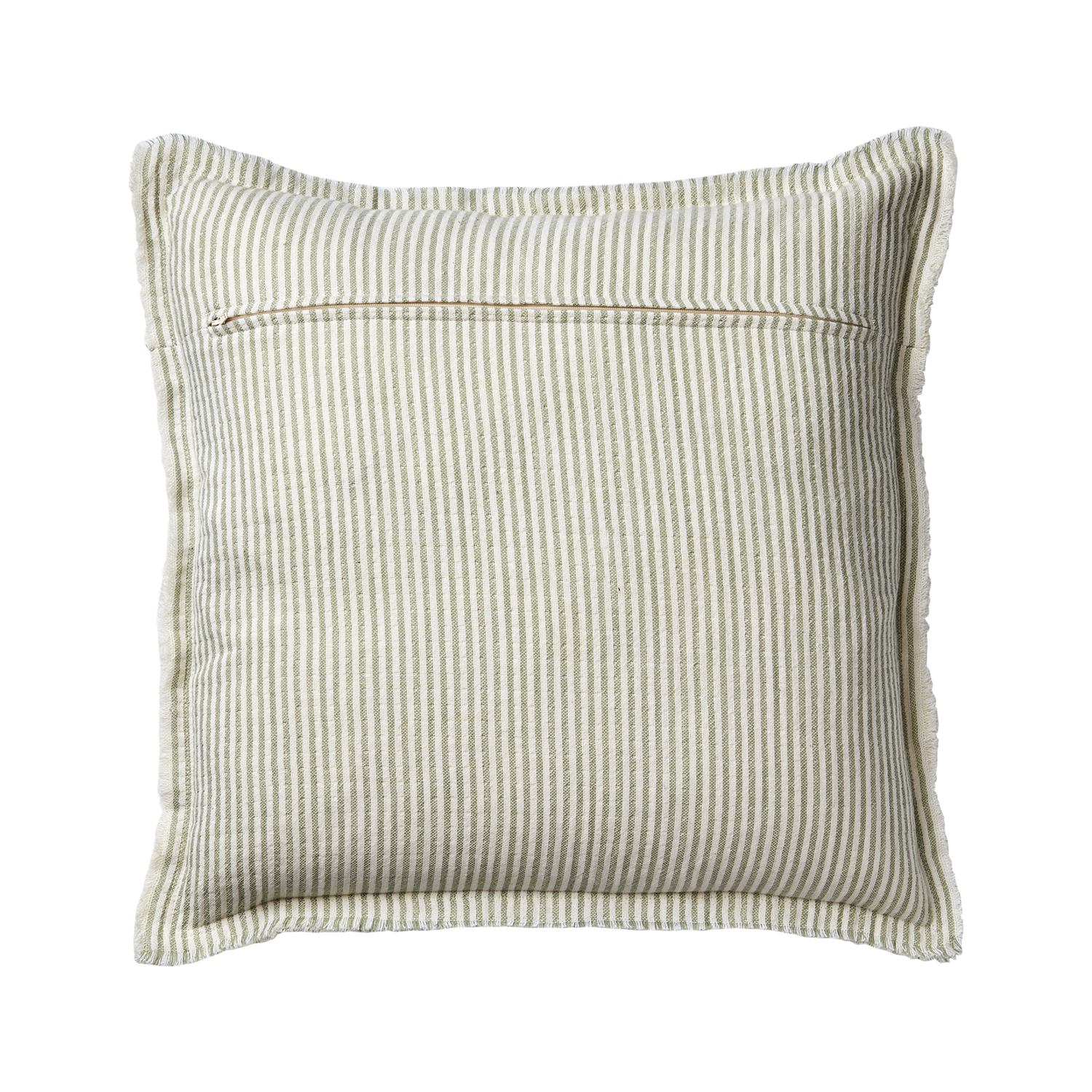 Our understated Thea Green and White Stripe Cushion will add a touch of neutral tone and texture to any setting. A versatile accent, this elegant cushion will elevate any aesthetic. Feather Inner Included.