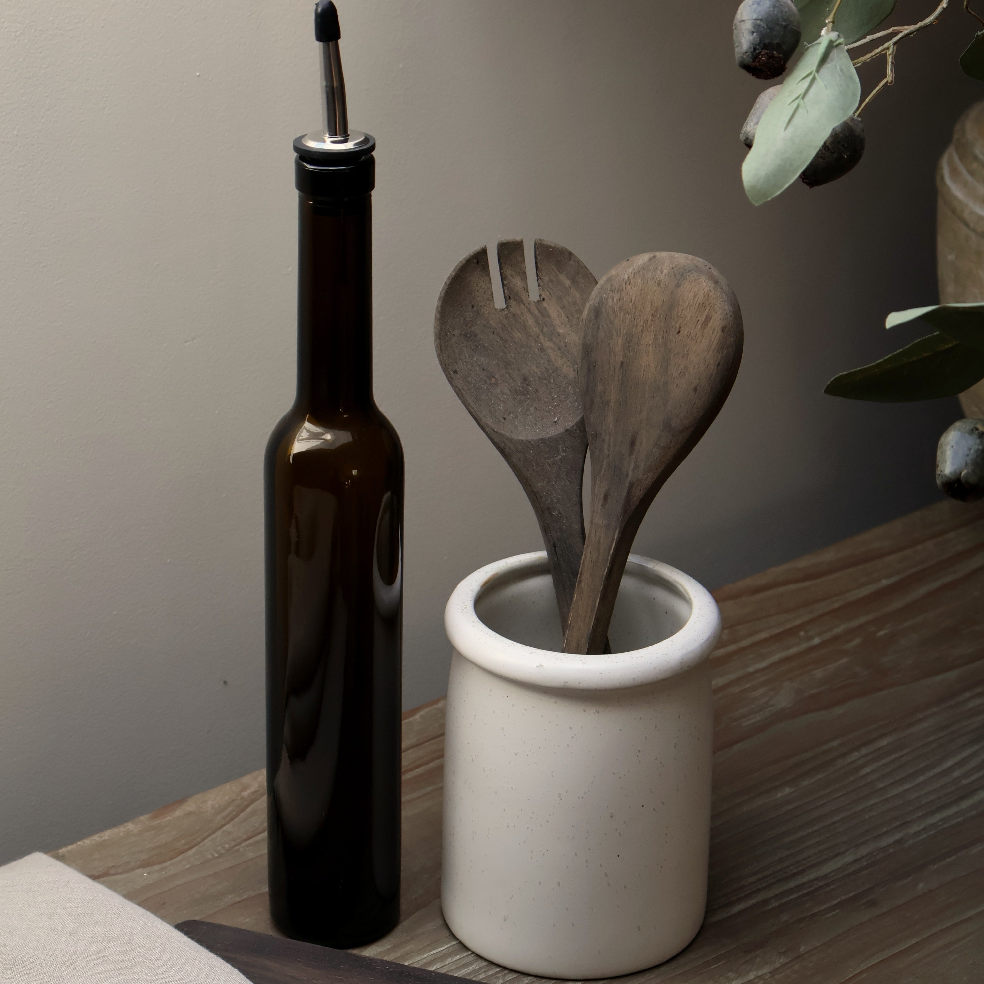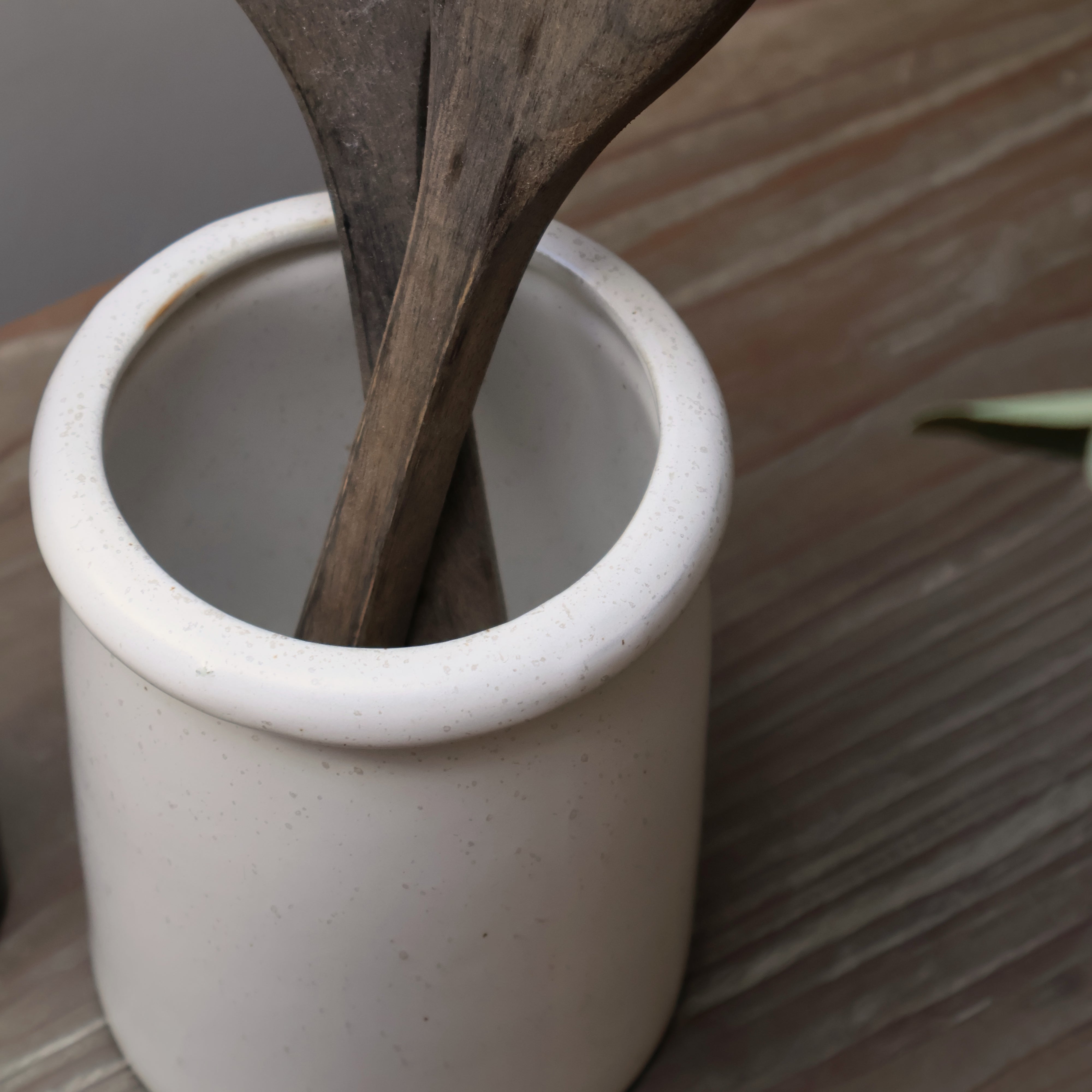 Organise your kitchen utensils in style with our Luna jar from. It is made of porcelain and finished with a white, speckled glaze that gives it a fine yet informal touch. Instead of keeping your spatulas, whisks and wooden spoons in the drawer, put them on display on the kitchen counter and have them close at hand for everyday cooking. The jar is a fine addition to your kitchen décor and will complement any style and colour scheme.