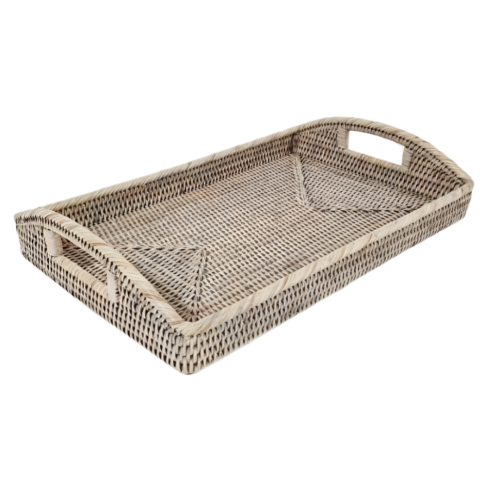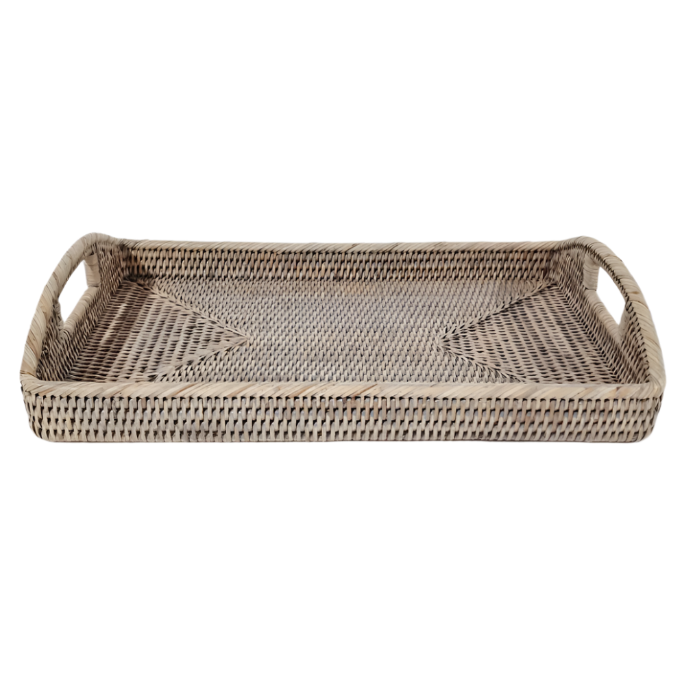 Handwoven and lacquered in Myanmar, our rattan accents feature a durable double-weave and handcrafted charm. Our rattan tray is versatile as it is stylish. Full of rustic charm, this lovely catchall is great for holding and displaying anything from candles and books to vessels full of fresh flowers. The possibilities are endless!