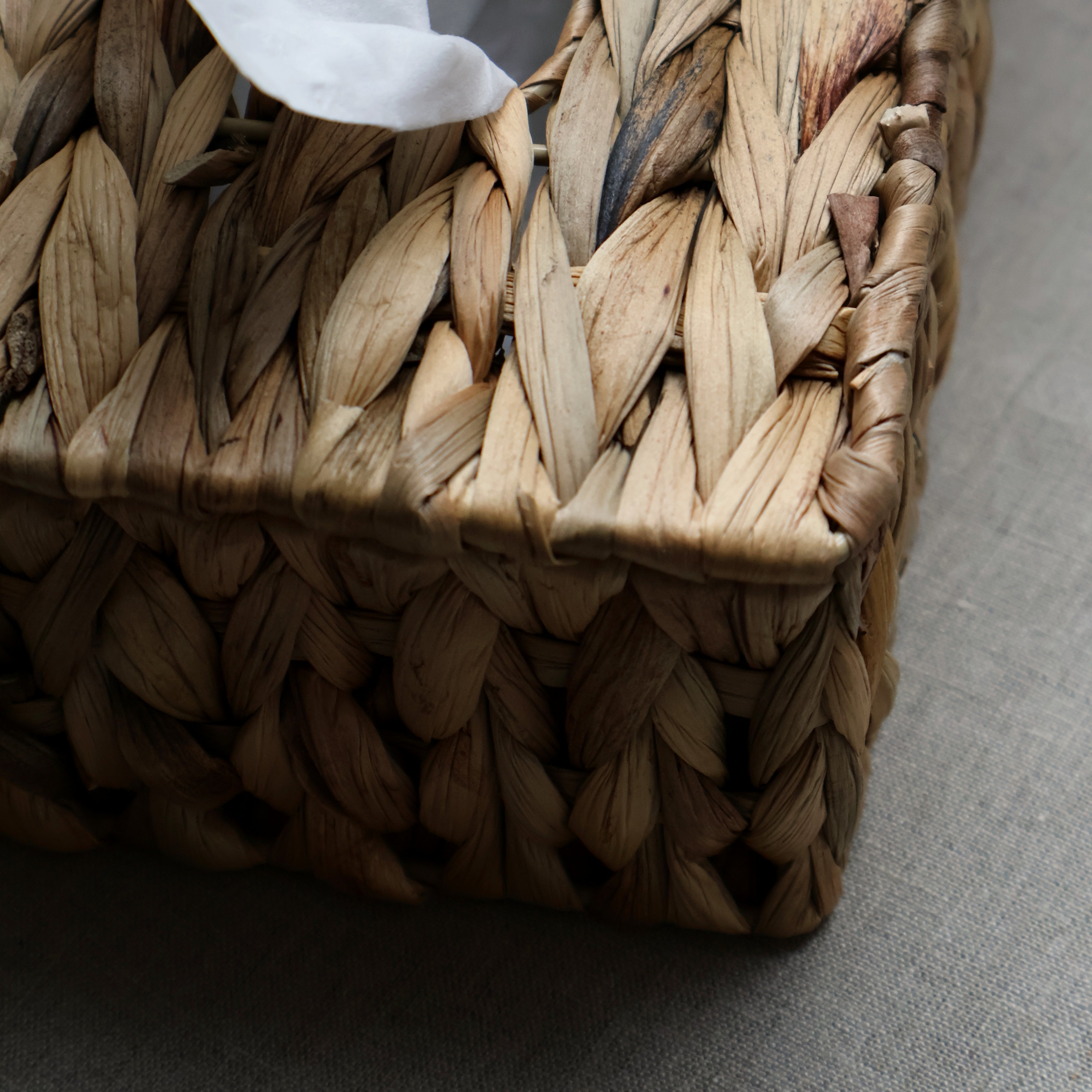 A decorative addition to your bathroom, night stand or kitchen counter with our handwoven water hyacinth tissue box. It adds a soft touch to your home décor and a fine balance to sleek materials like metal, marble and tiles.