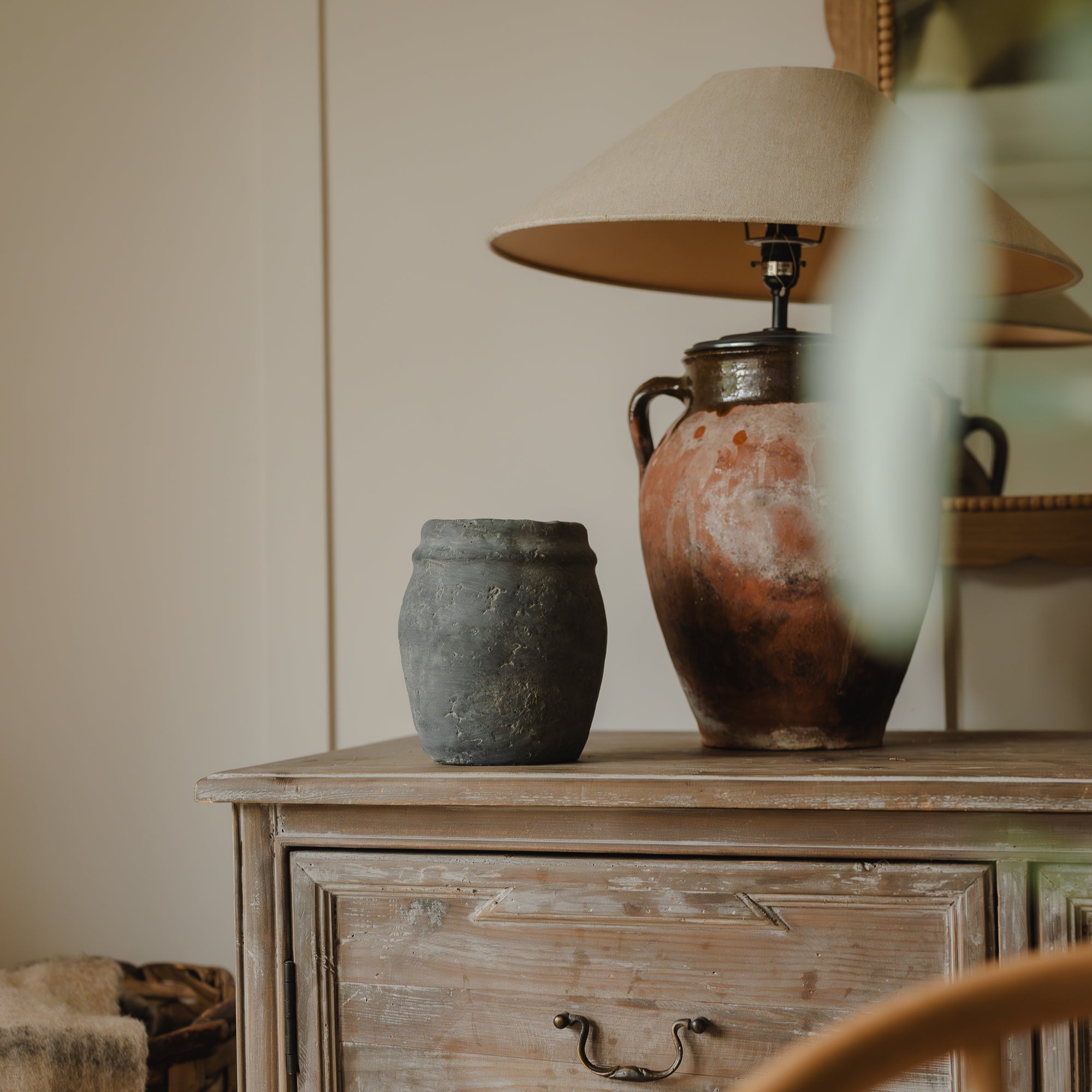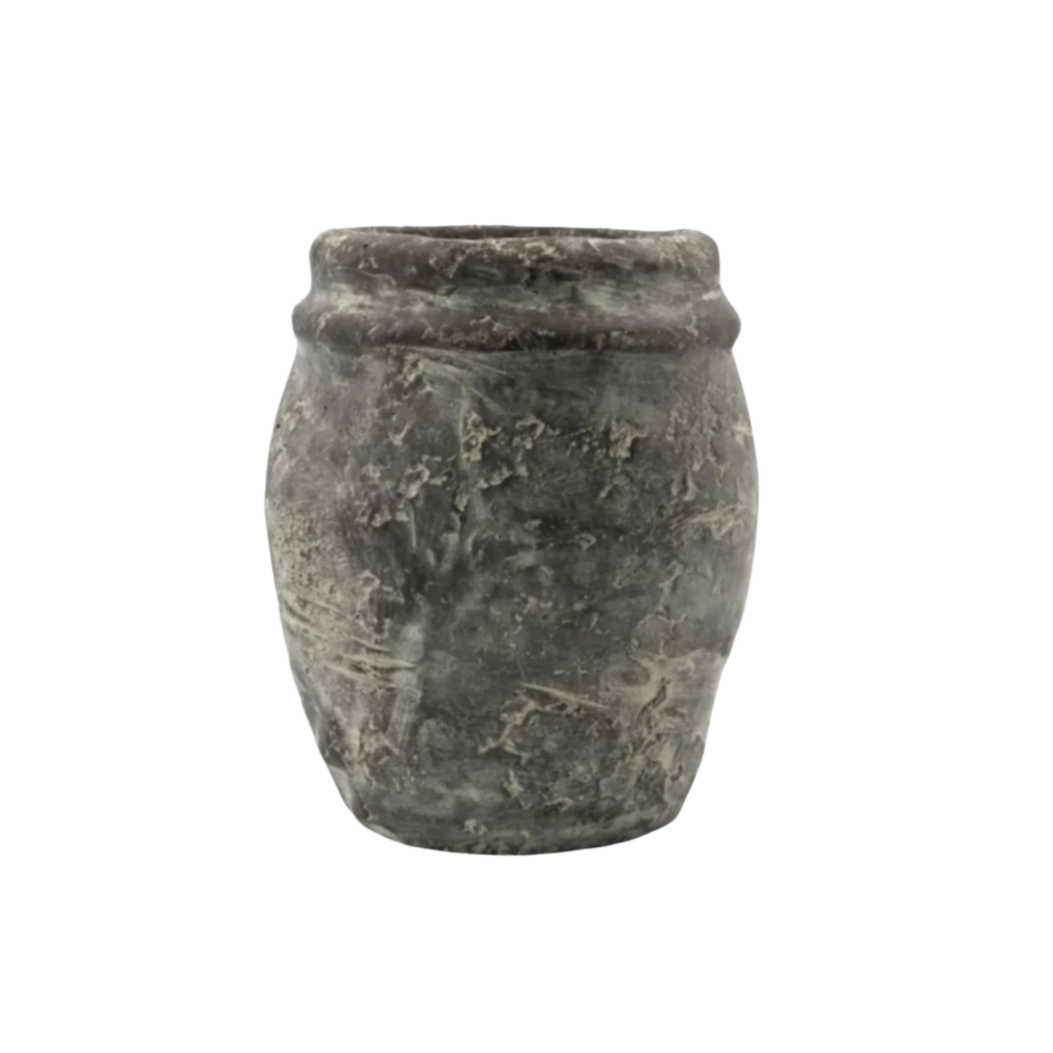 With its textured finish, slightly uneven edges and colours that vary from black to grey and white our Handmade Prado Vase can be used as a stand alone piece or adorned with faux foliage. Because the cement and sand material is not waterproof, the planter comes with a plastic insert, so you can use it with fresh flowers as well. Can also be used in kitchen for utensils. Available in a larger size.
