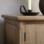 Our Lyon Two Door Cabinet exudes french farmhouse charm. Crafted from sustainably harvested solid mahogany, this timeless cabinet features a warm, natural finish that will complement any décor. With two shelves inside this piece can be used as a side table, hall table or bedside.